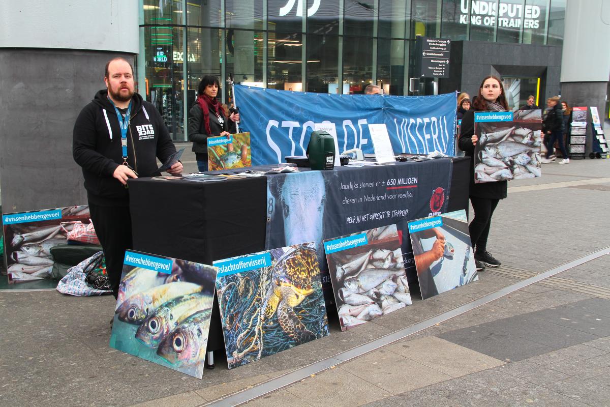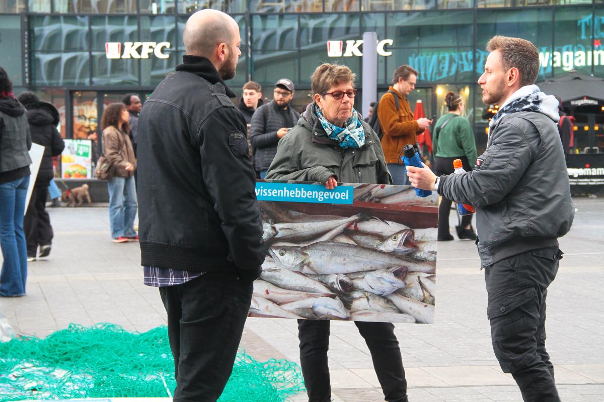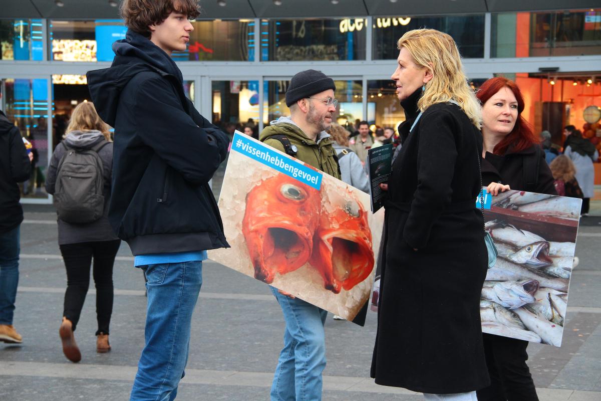 Toegegeven: er is nog een lange weg te gaan. Niet iedereen was het ermee eens dat vissen gevoel hebben óf zelfs maar als individuen kunnen worden gezien, maar dit was niets vergeleken bij het aantal flyers dat we hebben kunnen uitdelen en het aantal hoopvolle gesprekken dat we hebben kunnen voeren .