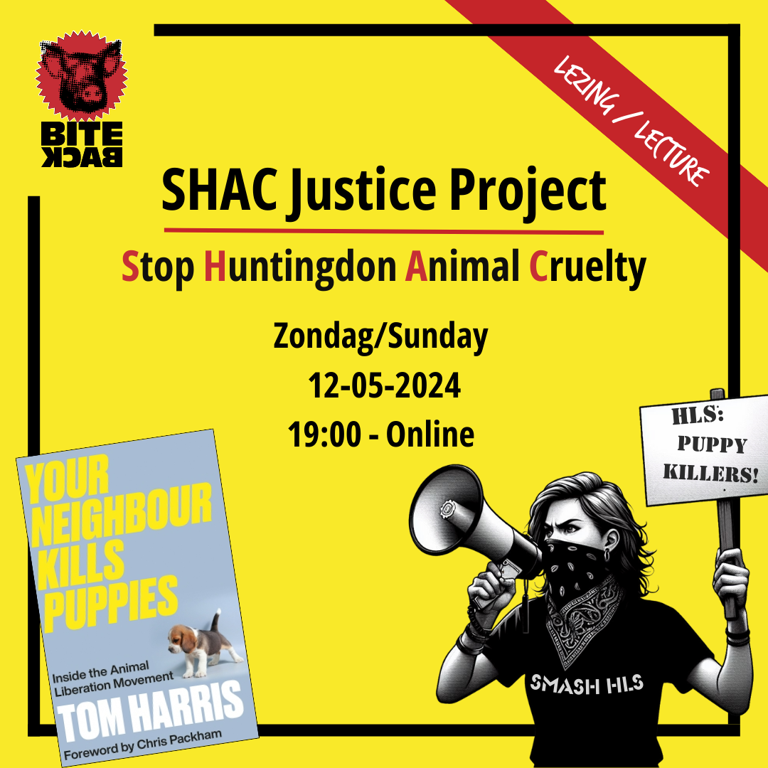 Op 12 mei zal er (om 19:00) een online lezing worden gehouden door Tom Harris over SHAC, het SHAC Justice Project en het boek Your Neighbour Kills Puppies (aanrader!!). SHAC Justice Project Het SHAC Justice Project bestaat uit 7 dierenactivisten die op oneerlijke wijze (en naar onze mening onterecht) zijn veroordeelt voor hun strijd tegen […]