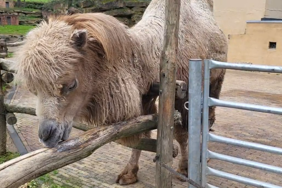 Bij elk bezoek aan Mondo Verde vertoonden de kamelen stereotiep gedrag. Dit deed zich uiten door het obsessief likken van bepaalde oppervlakten, zoals op de foto hiernaast zichtbaar is.